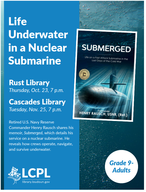 Nov 25 Tuesday 7 PM Cascades Library Sterling I will be giving a talk on submarines and signing my new book.