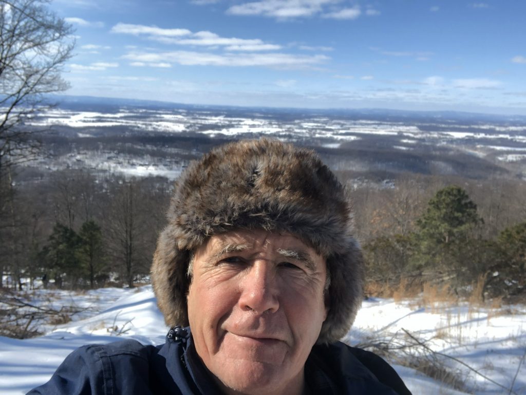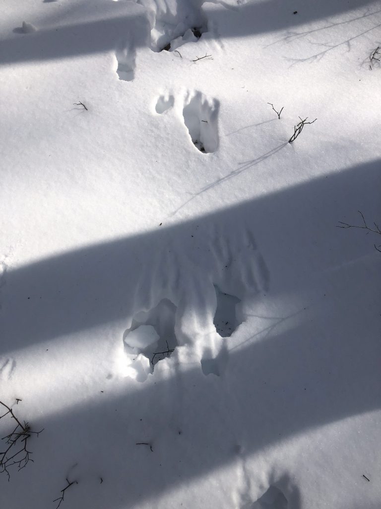 Up on the mountain yesterday, I found I wasn’t alone; it looks like Yogi woke from his nap midwinter and is searching for a pic-a-nic basket. That’s me in the picture, looking down on a frozen lake that I was swimming in just six months ago! It is a wonder of nature, and a gift to us, I think, to see such changes with the seasons. Spring is promiscuous and fecund, Summer lazy and fat, Autumn harried and hurried with winter preparations and family holidays. Winter is none of that: unhurried, austere, serene, and supreme. Think you’re going somewhere today? Look out the window, think again. Best curl up with a good book, next to the fire (or fires, I use two stoves to stay warm, a coal stove and a wood-fueled one). Needless to say, my favorite season.
